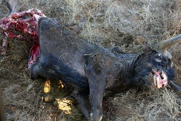 (I assume by this point you’ve forgiven the sudden camera angle of the clip!). By the way, apparently this male was not satisfied with the black wildebeest the females brought down earlier that morning – here are the remains of that kill:
