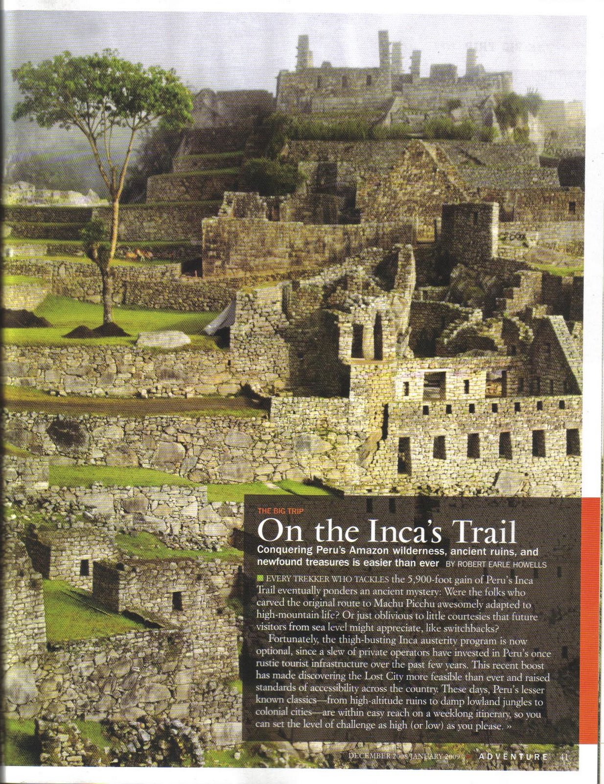 But National Geographic editors aren’t the only ones with a good eye for a great take on Machu Picchu (the market is saturated with Machu Picchu images). The next image sequentially from the shoot was the first to be licensed and published this year, also a full page, by tour operator Jim Berkeley of Destinations & Adventures International. The whole brochure is stunning and gorgeous, but this is understandably my favorite, page 83: