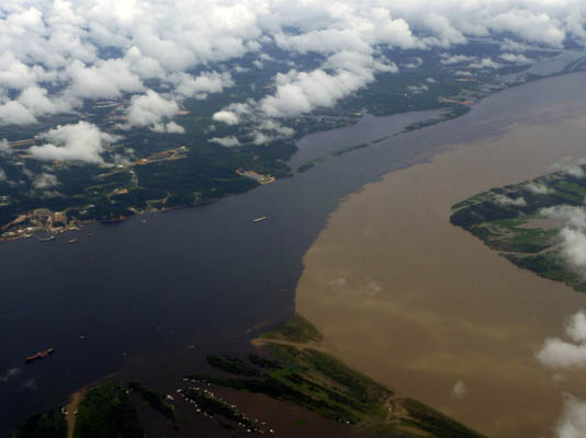 The meeting of the waters on the Amazon, as seen from the plane
