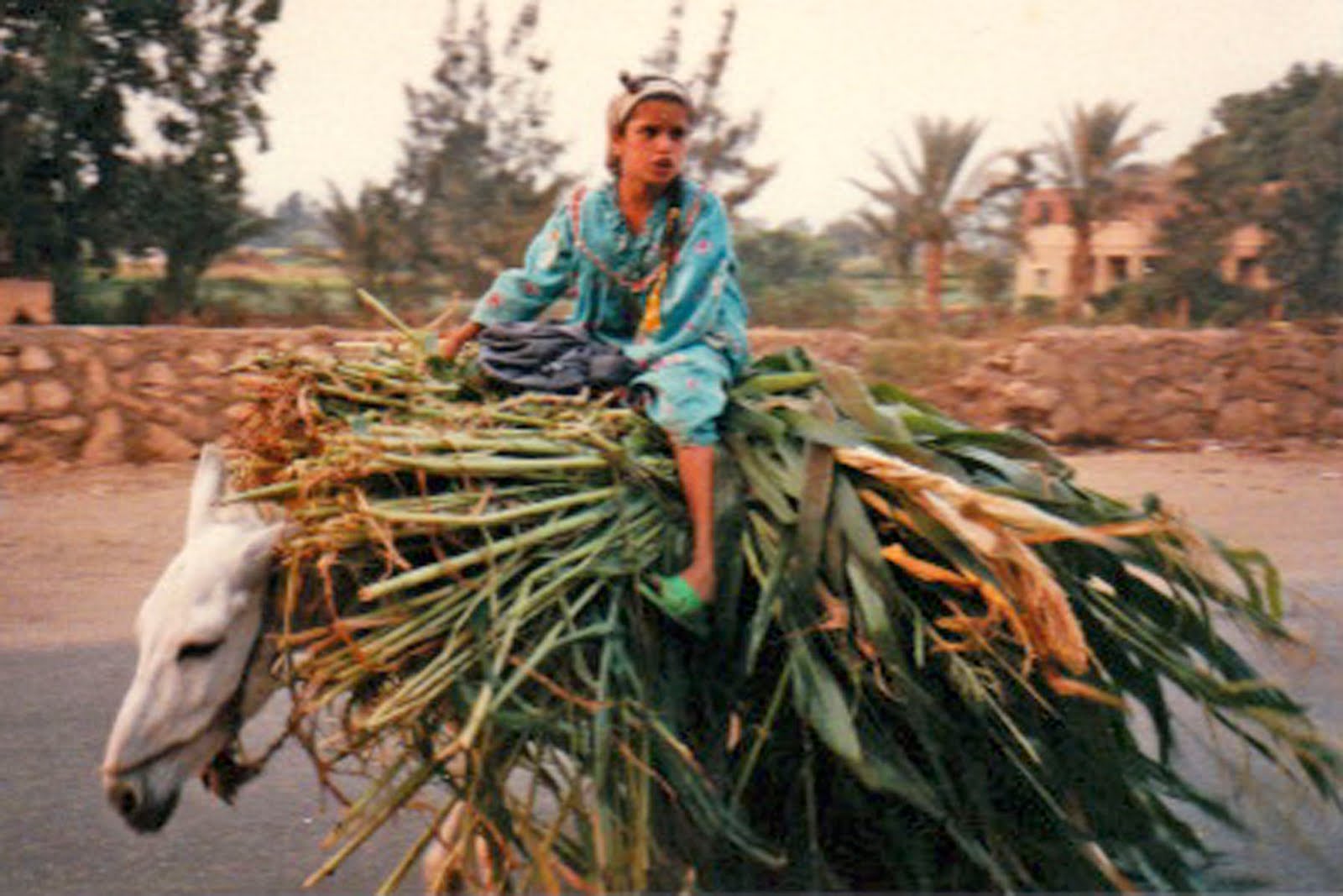 We drove back on Sakkara Road (I think?) along the river through rural farmlands. We stopped at a busy corner to have some drinks, and the locals were quite intrigued with us. Children were working – pulling oxen or riding donkeys with loads of farm harvests. One small girl wearing pink was smiling in curiosity as she’d never seen foreigners before. After a lengthy communication ordeal, we took a picture with permission and encouragement from her father. We thanked her by buying her an ice cream, and her father beamed. She was too cute! But the women covered head to toe in black were downright frightened of us, disappearing anywhere we went.