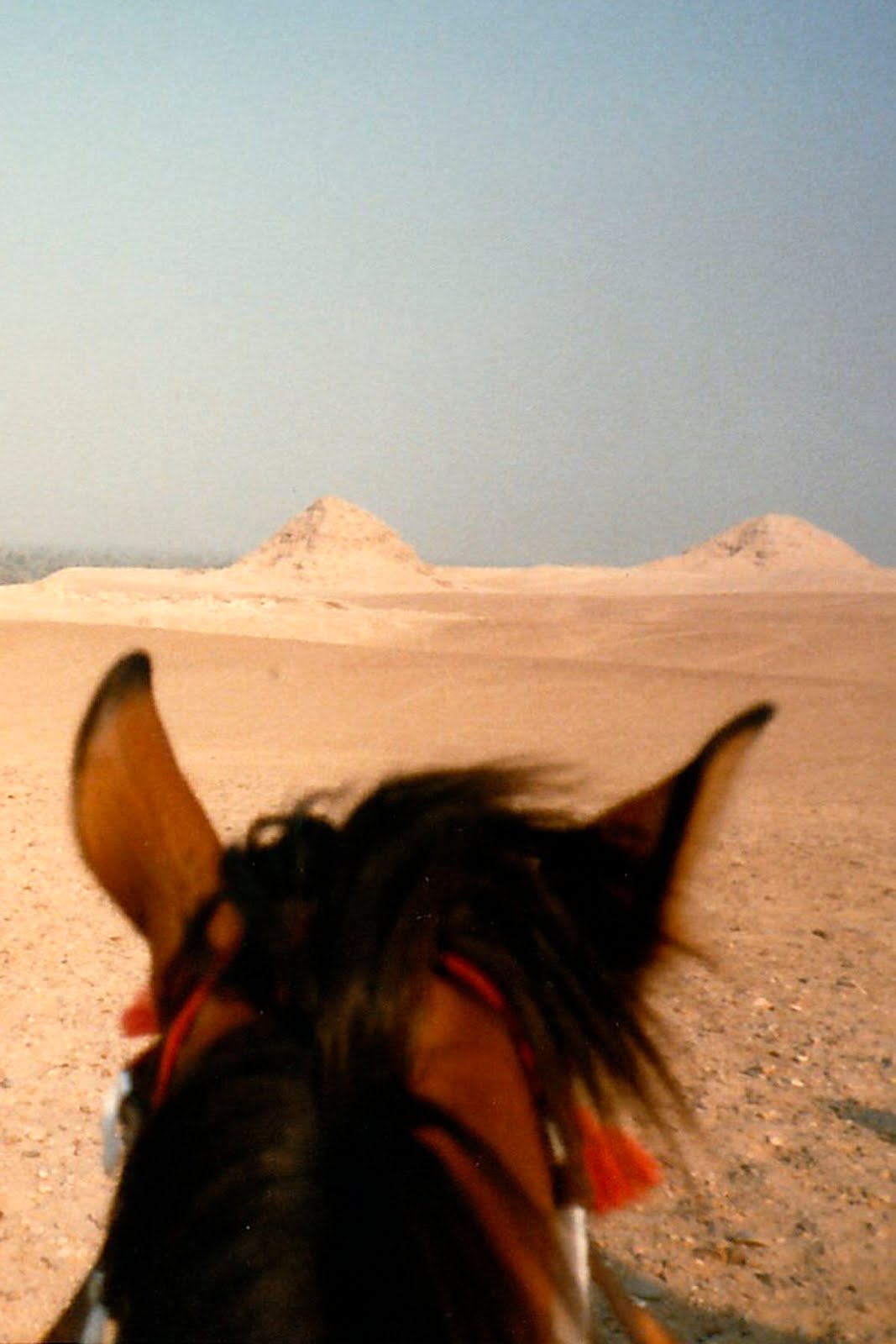 We rode along the edge of the desert for quite some way, me with the guide who was keeping close watch on my horse. It was so neat to watch the rolling hills of sand sweep by as we galloped through. I lagged behind but finally got the feel of rhythm with my horse as we reached the end. We checked out the step pyramid and rested a bit.