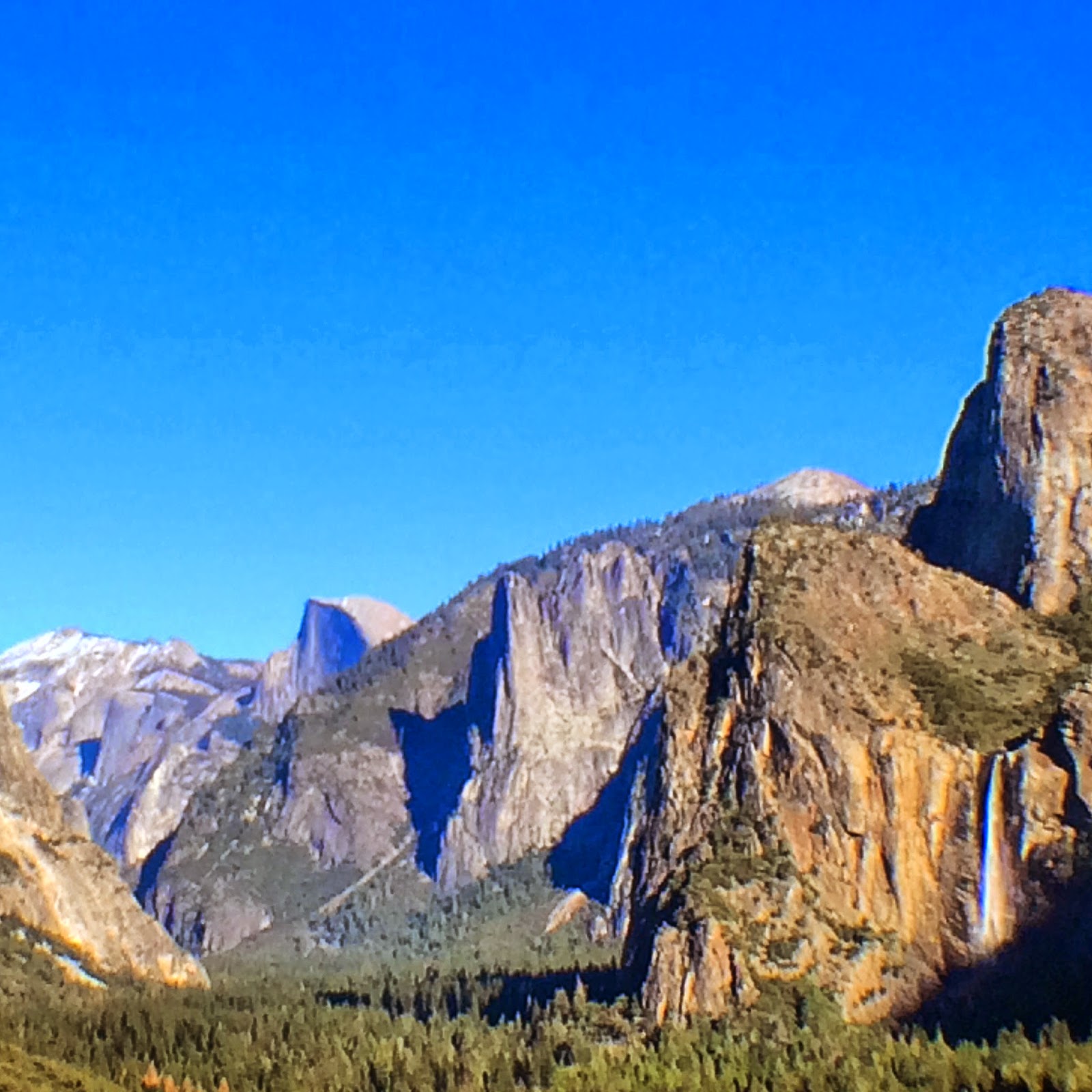 Whether it was 30 years of skill, or 30 years of technology, the iphone shot was a definite improvement. The view was pretty much the same. My skill had improved to the extent that now I knew to chase the magic light, and to be there when late afternoon shadows would give the scene depth and texture. And no, I wasn’t pioneering with that intention. There were the other photographers all there with their tripods at the same time taking the same picture. Which still, quite frankly, wasn’t remarkable, even in the best light of day, right before the shadow creeps up Bridal Veil Falls. Blue sky? Boring. This is a scene that takes really spectacular weather and light conditions to make it interesting enough to stand out from the rest, but there you have it. It’s my least favorite of all the shots I took at Yosemite. Yet it resonates with each of us.